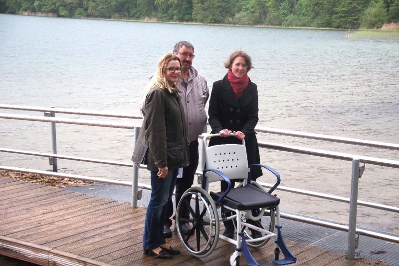 Leider war Nieselregen und kein Badewetter, als Birkenzweig e. V. am 14.05.2014 der Gemeinde Feldberger Seenlandschaft einen Rollstuhl für den barrierefreien Lichtenberger Badestrand schenkte. Auf ihm können künftig Rollstuhlfahrer oder mobilitätseingeschränkte Badegäste ohne Hindernisse über die Rollstuhlrampe ins erfrischende Nass des Breiten Luzins gelangen.